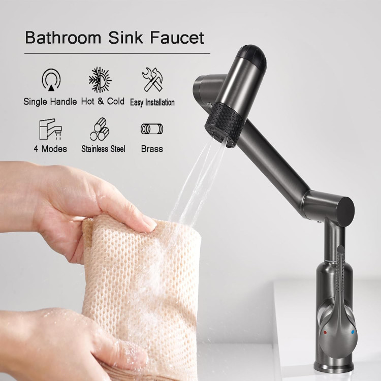 شیر روشویی 360 درجه Huadiao رنگ دودی با 6 حالت پاشش آب – طراحی مدرن و کاربردی