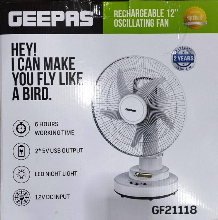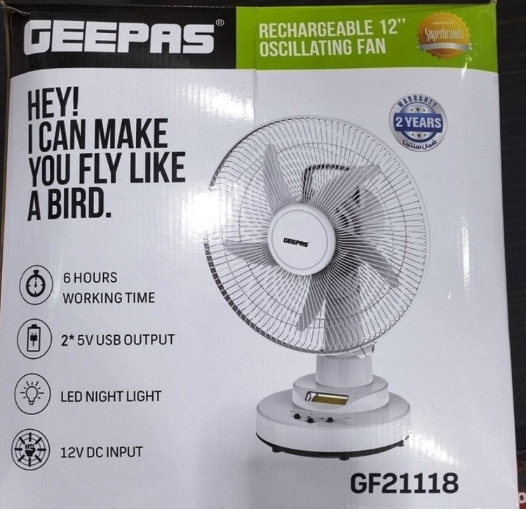 پنکه شارژی Geepas GF21118: خنکای بیوقفه، هر جا که باشید!