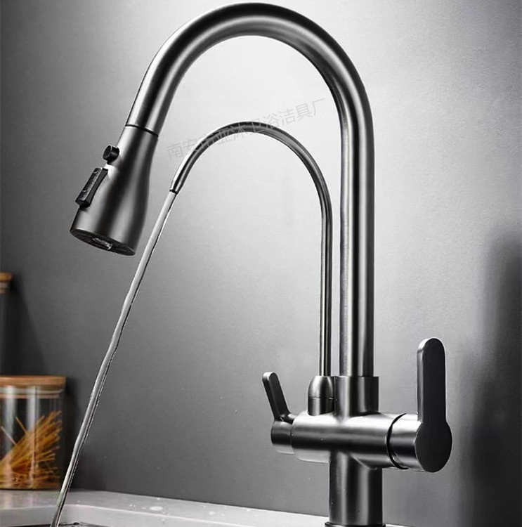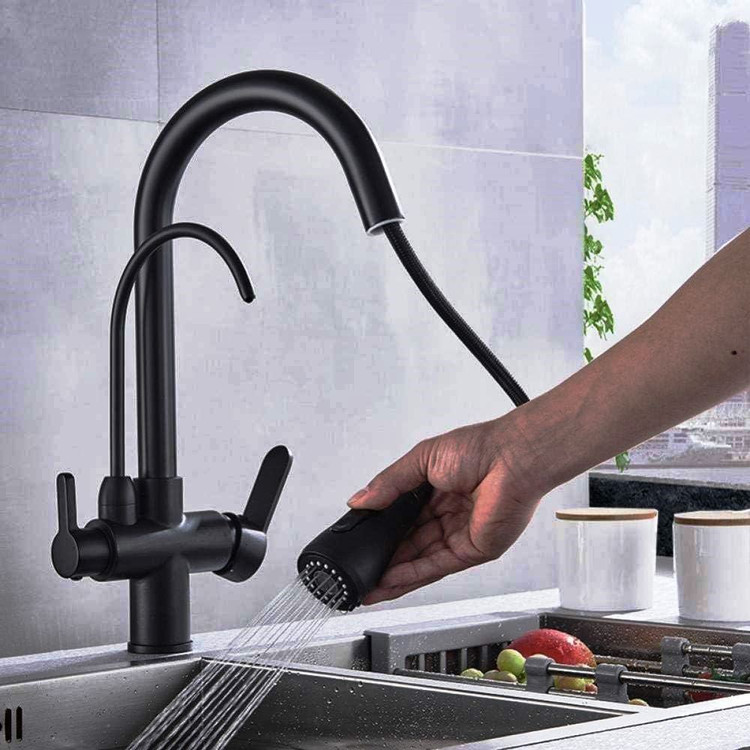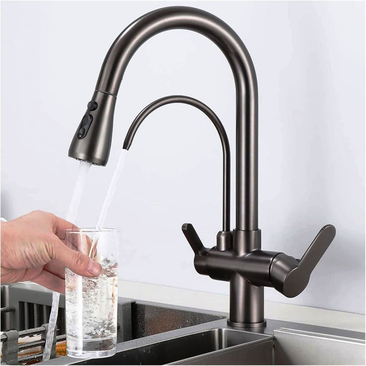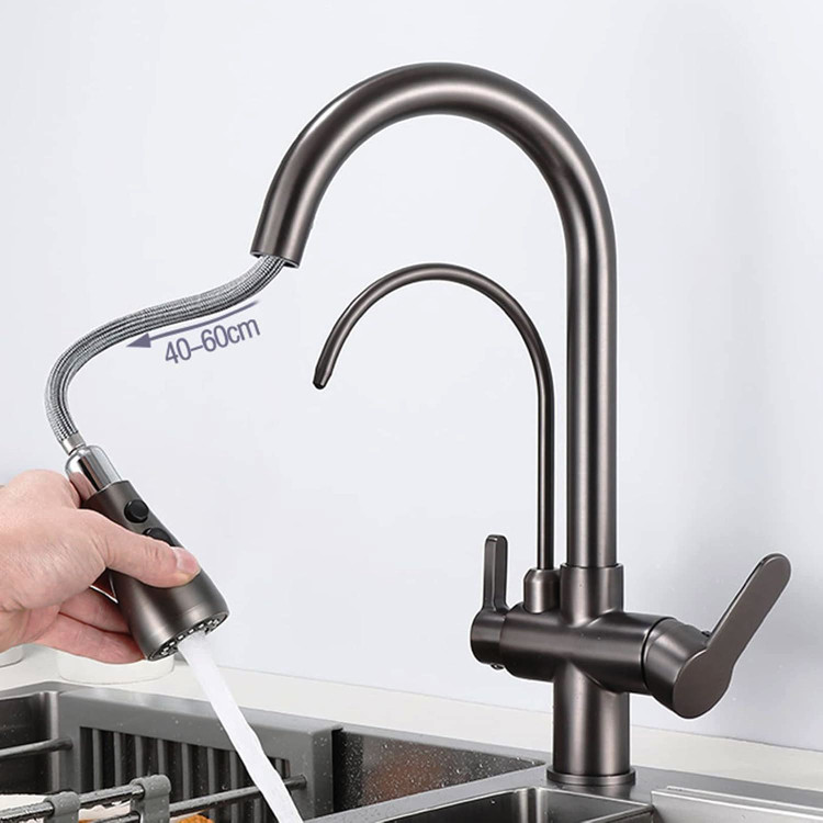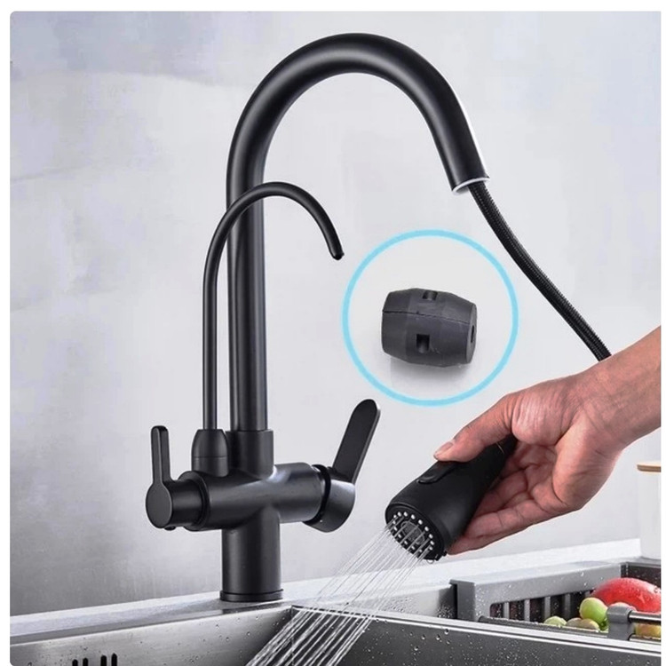 شیر ظرفشویی دوکاره شاوری ۳ حالت پاشش + دو خروجی شیر آب شهری + تصفیه DIKALAN