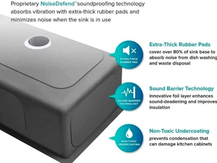 عایق صدا و ضد میعان: لایهی زیرین سینک کاملاً عایق صدا است، بنابراین صدای برخورد آب با فلز به حداقل رسیده و آرامش آشپزخانه شما حفظ میشود. همچنین تکنولوژی ضد میعان از تعریق و چکه کردن سینک جلوگیری میکند.