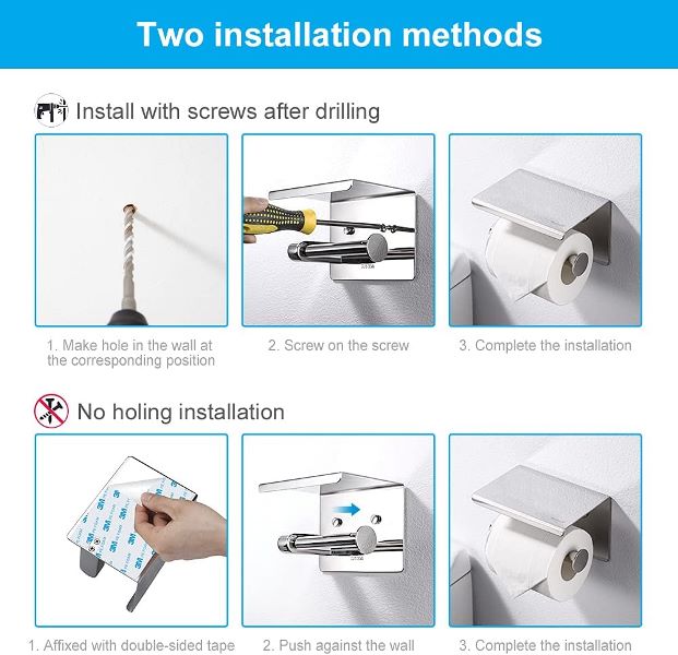 جای دستمال توالت و آشپزخانه استیل 304 ضد زنگ | نگهدارنده رولی مدرن، شیک و لوکس Holder