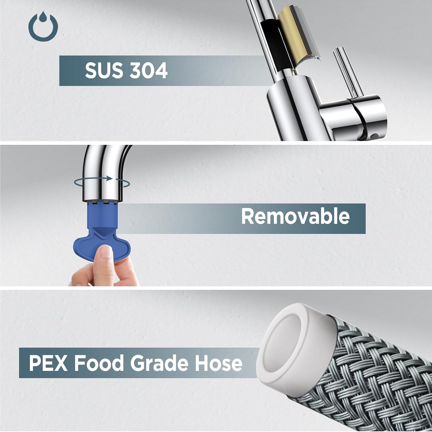 بدنه این شیر از استیل 304 ضد زنگ ساخته شده؛ متریالی که در برابر رطوبت، زنگزدگی و تغییر رنگ مقاوم است.